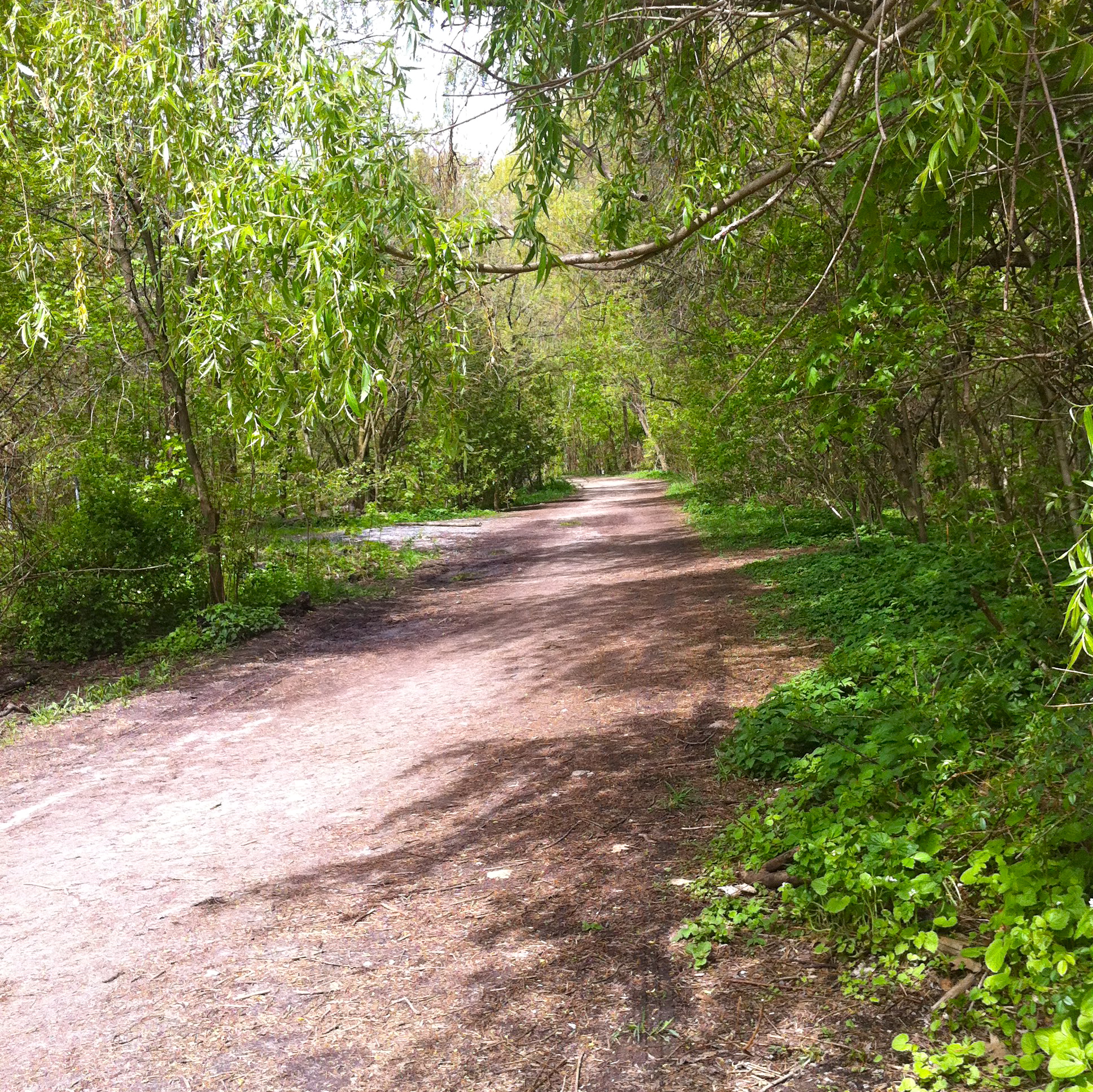 As we continued to walk downhill on the path admiring the trees, we stopped at the end of the path. Our guide pointed out a couple different paths – one going westward and the other going east. Since our final stop was the Evergreen Brickworks, we were going east.