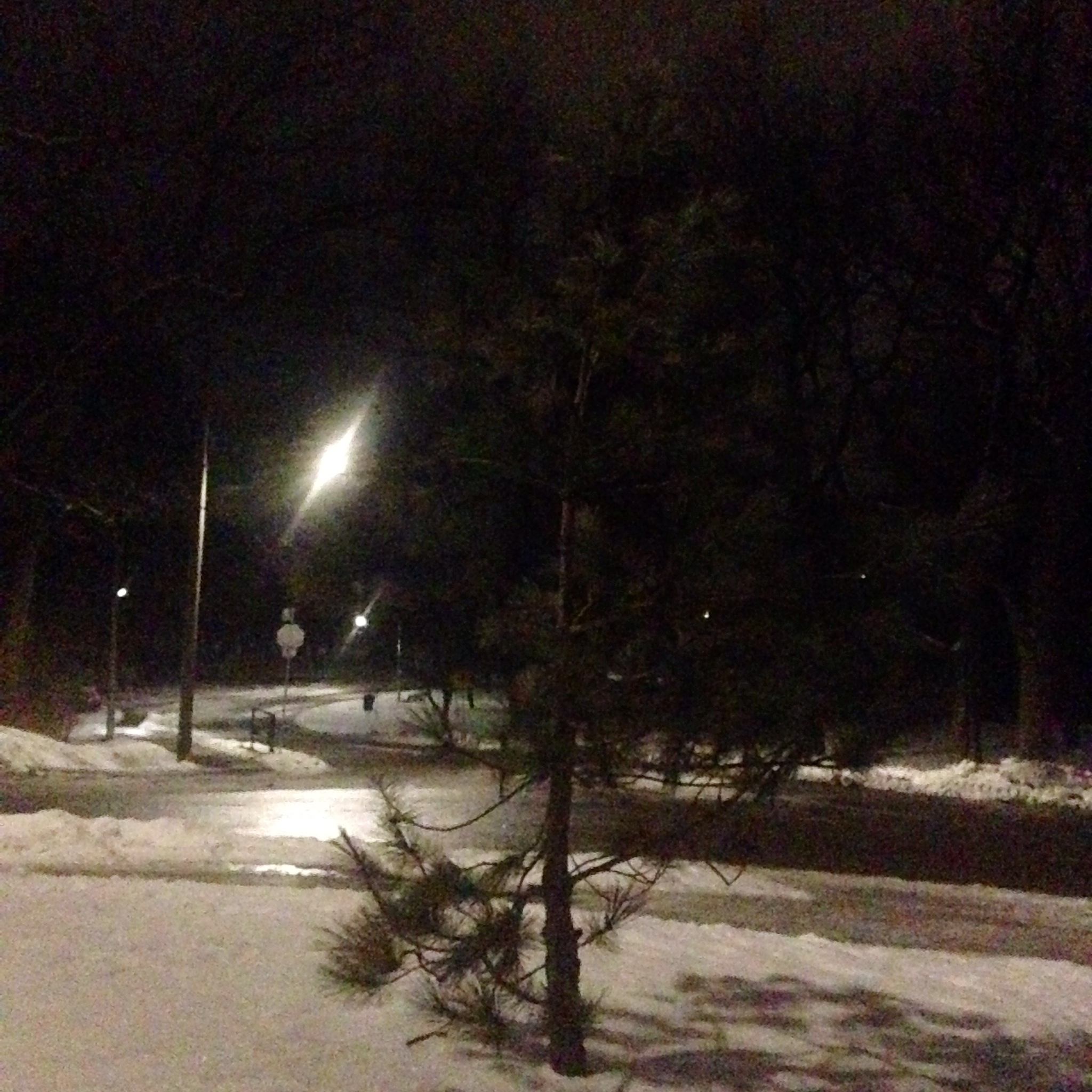As the Toronto Adventures’ guide walks were at several locations in Toronto and outside of the city, I went with the walk through High Park. It was easier for me to get to without a car and by TTC. There were probably at least 20 of us in the group that went out Thursday evening. So complete with our snowshoes provided by Toronto Adventures and our two young guides, we set off from Tim Hortons across from the entrance to High Park. At the entrance, we put on our snow shoes and were given a brief intro to snowshoeing and a mini-lesson on walking with the shoes on.