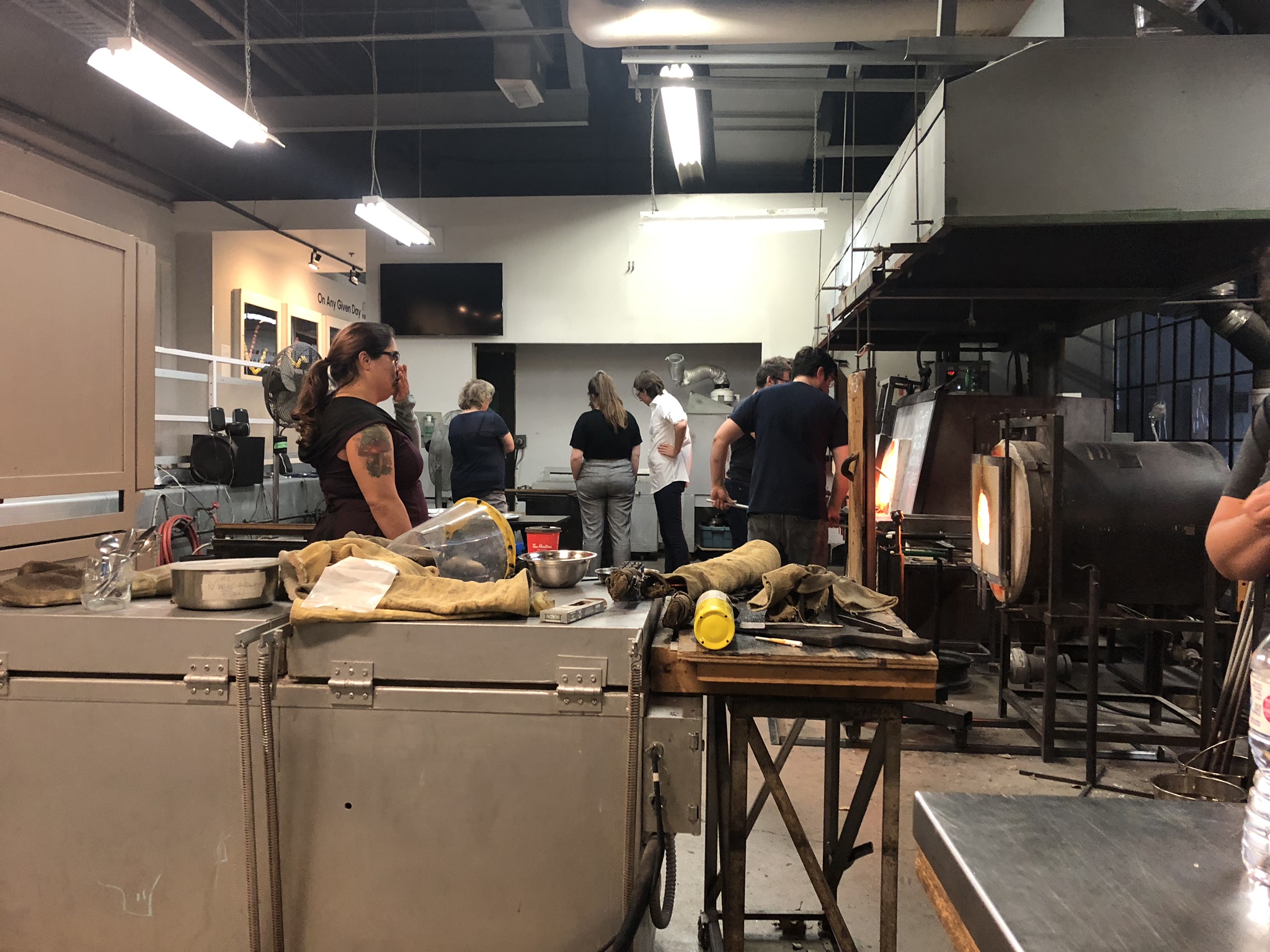 The person I was working with and showing me what to do got me started by adding the heated up glass to the metal stick. I, then, took over and, with his guidance, started adding colour to the glass, continuing to roll the glass and heating it up between adding the colour (the colour bits needed to be melted into the glass).
