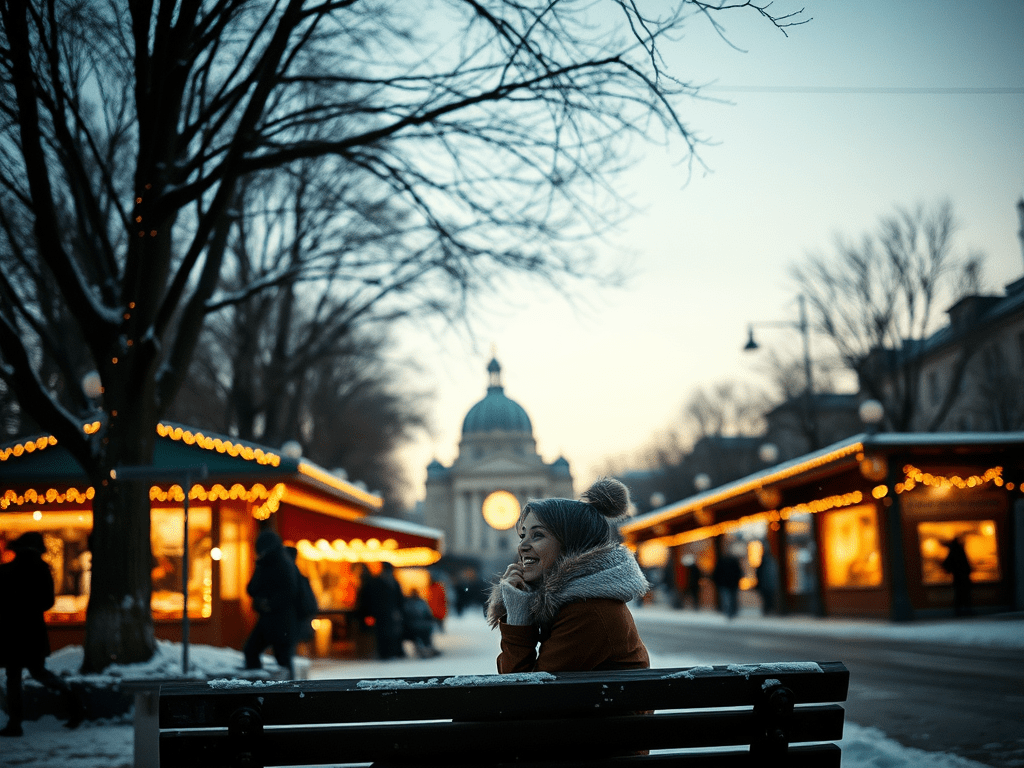 Feeling a bit more composed, I rose from my seat and caught sight of the Christmas market I had spotted earlier. Its twinkling lights beckoned me, promising warmth and holiday cheer. With a renewed sense of adventure, I headed towards the vibrant stalls, eager to lose myself in the festive atmosphere and perhaps find a little magic amidst the chaos of the day.